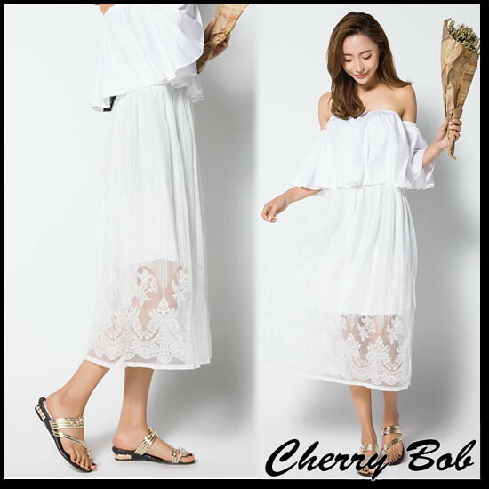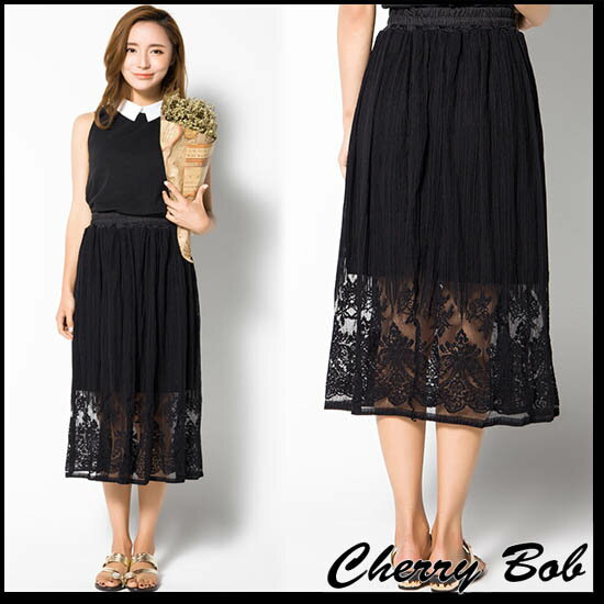 チュールレーススカート ロングスカート カーテンレース 透かし 花柄 ウエストゴム 大人可愛い 2色展開 16ss 05P18Jun16